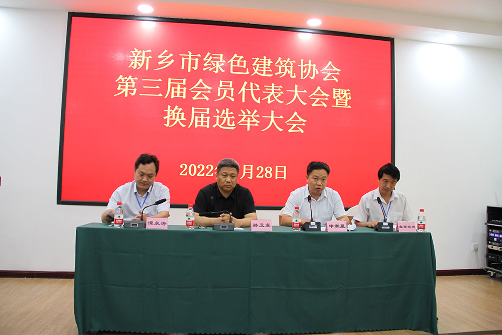 2022年6月28日下午,新乡市绿色建筑协会第三届会员代表大会暨换届选举大会在德润会议中心召开,新乡市住房和城乡建设局孙卫东局长、新乡市民政局申家星局长、新乡市住房和城乡建设局科技标准定额科马树信科长、各企事业代表、行业同仁,共32家单位49人,参与了本次换届大会。